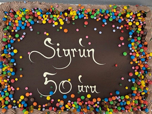 Hún Sigrún okkar verður 50 ára á morgun 26. mars og af því tilefni héldum við upp á daginn með "surprise" afmæli fyrir hana. Við komum saman í borðstofu Urðarhóls og tókum á móti henni með afmælissöng. Jón Jónsson kom og tók nokkur lög fyrir okkur, var það svakalega gaman og allir skemmtu sér vel.