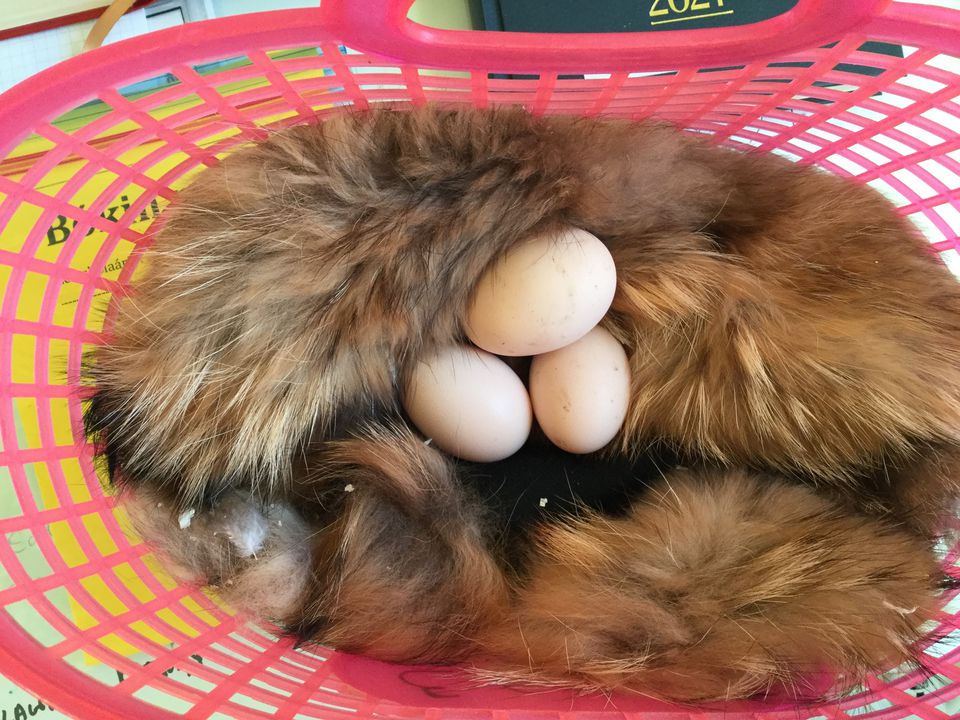 Þau gleðitíðindi voru í morgun að þegar farið var út í hænsnakofa til að opna fyrir hænunum voru þrjú egg í hillunni. Þetta vakti að sjálfsögðu mikla lukku. Sá háttur verður á að hver deild gætir að hænunum í eina viku í senn þ.e. miðvikudag til þriðjudags og verður Stubbasel með fyrstu eggjavikuna þ.e. Stubbasel tínir eggin þessa vikuna og finnur svo sameiginlega út úr því hvað skal gera við eggin. Svo tekur næsta deild við koll af kolli.